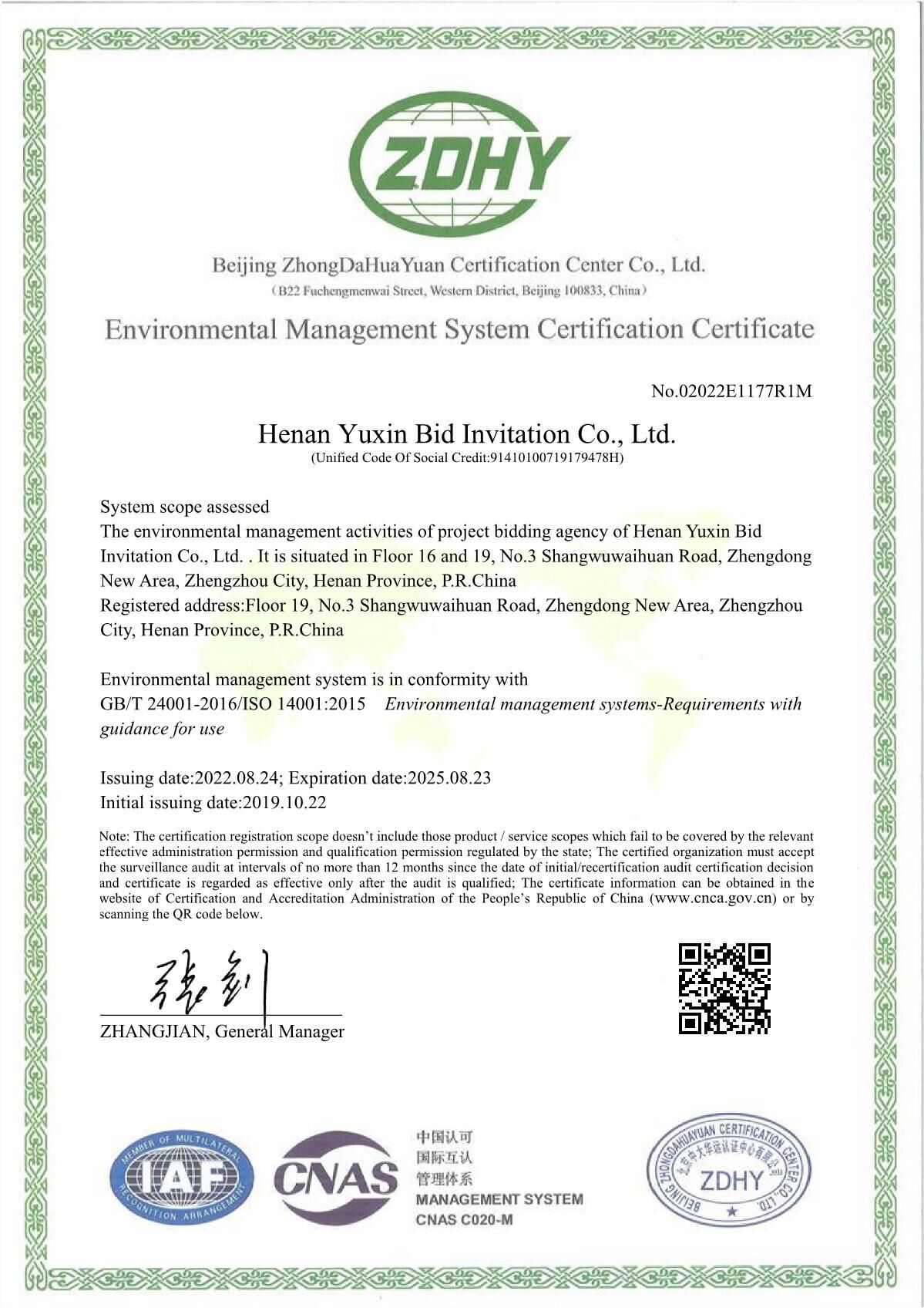 環(huán)境管理體系認(rèn)證證書(shū) -