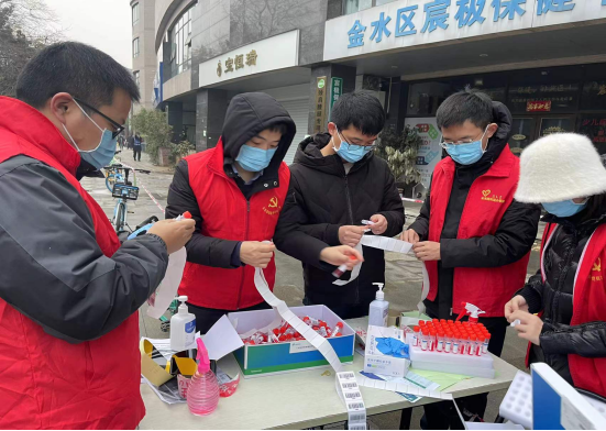 沒有從天而降的英雄,只有挺身而出的凡人”。2022年初,鄭州新冠疫情反撲,形勢嚴(yán)峻,為盡快遏制本輪疫情,全市增設(shè)多處核酸檢測點,社區(qū)工作量激增,接到民航路社區(qū)通知需要大量志愿者協(xié)助社區(qū)進行核酸檢測,中共河南省工程咨詢中心第十支部迅速召集河南豫信招標(biāo)有限責(zé)任公司員工,組建了一支 45 人的志愿者隊伍(公司本部共70人,參加志愿者49人次,占比70%),其中黨員 21人,群眾 24 人,第一時間奔赴在抗疫第一線,開展了為期6天的核酸檢測志愿服務(wù)。