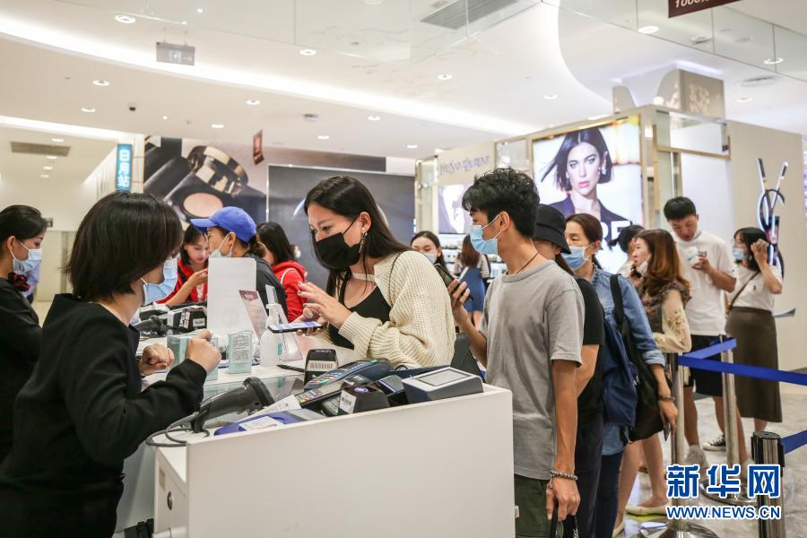 10月27日,消費(fèi)者在海南省??谑腥赵聫V場(chǎng)免稅店選購商品。新華社記者 張麗蕓攝