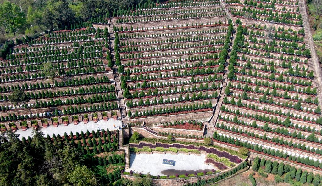 這是2021年4月4日拍攝的鄂豫皖蘇區(qū)首府烈士陵園(無人機照片)。新華社記者郝源攝