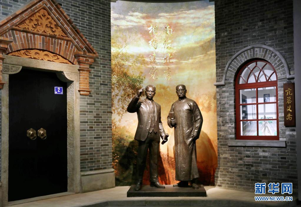 6月1日拍攝的中共一大紀念館內的“南陳北李,相約建黨”主題雕塑。新華社記者 劉穎 攝