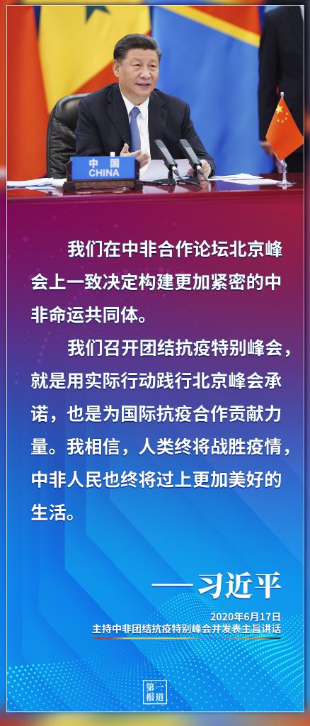 2020年,一場突如其來的新冠疫情席卷全球,非洲國家也被疫情陰霾籠罩。2020年6月17日,國家主席習(xí)近平主持中非團(tuán)結(jié)抗疫特別峰會并發(fā)表主旨講話,各方就支持非洲抗疫、推進(jìn)中非及國際抗疫合作等深入交換意見,達(dá)成廣泛共識,為全球抗疫斗爭注入強(qiáng)大動力。