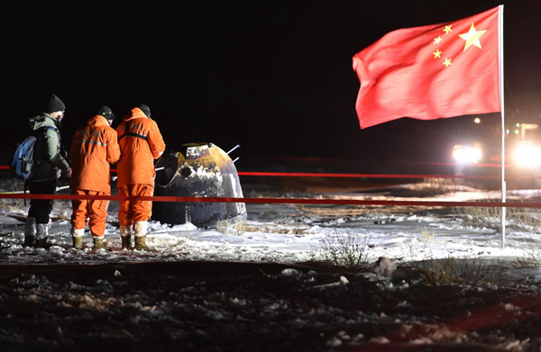 23天后的12月17日凌晨,內(nèi)蒙古四子王旗。在闖過(guò)月面著陸、自動(dòng)采樣、月面起飛、月軌交會(huì)對(duì)接、再入返回等多個(gè)難關(guān)后,歷經(jīng)重重考驗(yàn)的嫦娥五號(hào)返回器攜帶月球樣品,成功返回地面。