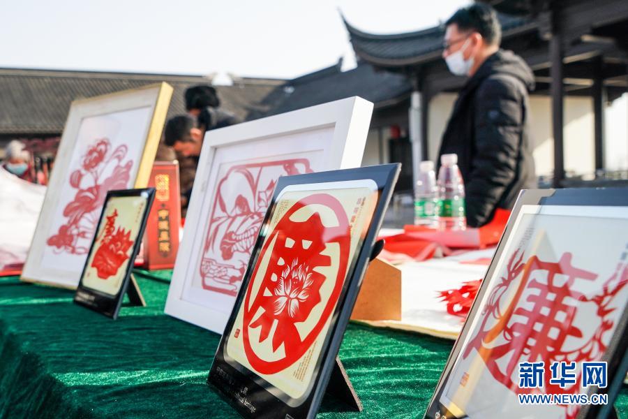 1月14日,江蘇省連云港市灌云縣紀(jì)委監(jiān)委在當(dāng)?shù)赝d鎮(zhèn)梅園文化廣場舉行廉政文化進鄉(xiāng)村活動。這是在活動現(xiàn)場拍攝的廉政主題剪紙。 新華社記者 李博 攝