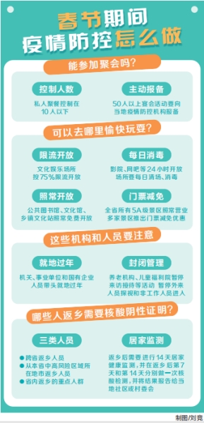 省衛(wèi)健委副主任張若石介紹,近日,省疫情防控指揮部就進(jìn)一步做好當(dāng)前新冠肺炎疫情防控工作、特別是冬春季農(nóng)村地區(qū)疫情防控下發(fā)通知,要求各地激活疫情應(yīng)急指揮體系,堅(jiān)持24小時(shí)值班值守,嚴(yán)格執(zhí)行“日?qǐng)?bào)告”“零報(bào)告”制度。要求減少大型聚集性活動(dòng),減少聚餐,減少人員流動(dòng)。50人以上活動(dòng)要制定防控方案,嚴(yán)格落實(shí)防控措施。文化娛樂場(chǎng)所按75%限流開放,影院、網(wǎng)吧等24小時(shí)開放場(chǎng)所要每日清場(chǎng)、消毒。私人聚餐控制在10人以下,50人以上宴會(huì)活動(dòng)要向當(dāng)?shù)匾咔榉揽貦C(jī)構(gòu)報(bào)備。機(jī)關(guān)、事業(yè)單位和國(guó)有企業(yè)人員帶頭就地過年。