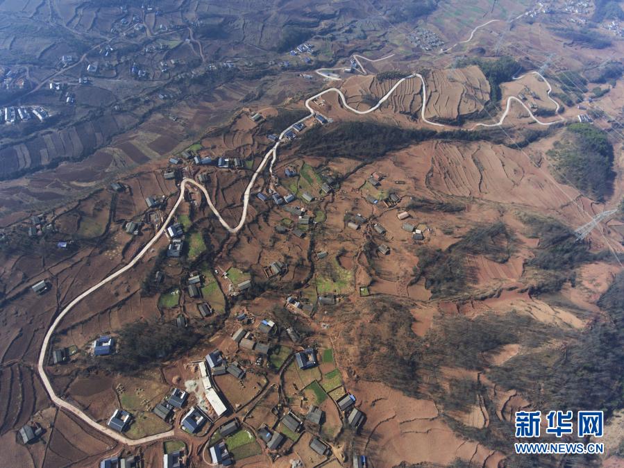 這是四川省涼山彝族自治州美姑縣九口鄉(xiāng)四峨吉村約6公里的道路硬化項(xiàng)目(2017年2月12日攝,無(wú)人機(jī)照片)。2015年8月,蔣富安由涼山州審計(jì)局派到美姑縣九口鄉(xiāng)四峨吉村任駐村第一書記,2016年8月22日因勞累猝死,年僅26歲。新華社記者 劉坤 攝