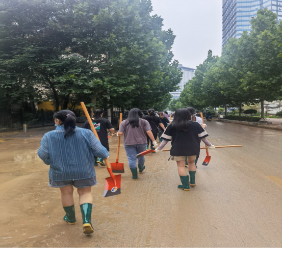 7月22日,市內(nèi)大雨雖過,洪水漸消,但抗災(zāi)救災(zāi)形勢依然嚴(yán)峻,為了幫助人民群眾迅速恢復(fù)生產(chǎn)生活,中共河南省工程咨詢中心黨委對中心青年、尤其是青年黨員發(fā)出了倡議書,第十黨支部收到倡議書后,迅速與幫扶社區(qū)取得聯(lián)系,在了解到社區(qū)急需人員、工具清理道路淤泥后,支部黨員及豫信公司員工紛紛“請戰(zhàn)”,踴躍報(bào)名參加防汛志愿服務(wù)活動(dòng),并于23日上午9點(diǎn)集合31人,攜帶公司自購清於工具,積極投入到災(zāi)后道路清理工作中。